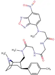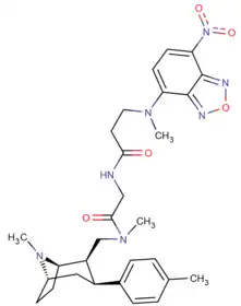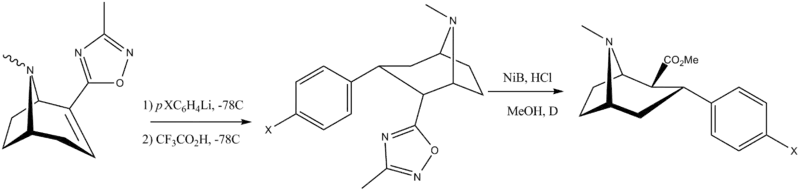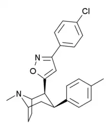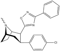 - ↑ Carroll, F. I.; Gray; Abraham; Kuzemko; Lewin; Boja; Kuhar (1993). "3-Aryl-2-(3′-substituted-1′,2′,4'-oxadiazol-5′-yl)tropane analogues of cocaine: affinities at the cocaine binding site at the dopamine, serotonin, and norepinephrine transporters". Journal of Medicinal Chemistry. 36 (20): 2886–2890. doi:10.1021/jm00072a007. PMID 8411004.