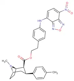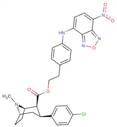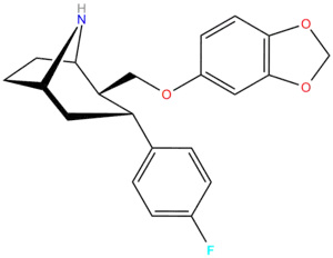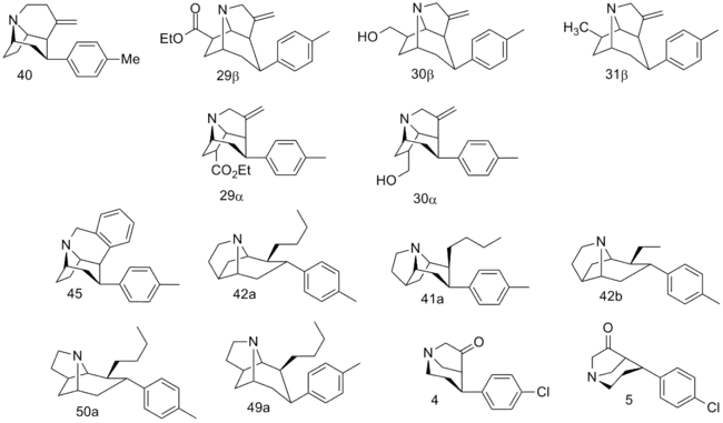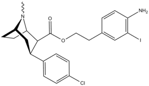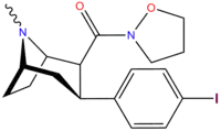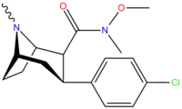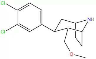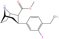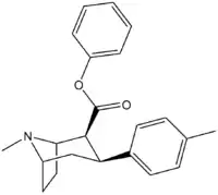 : CS1 maint: multiple names: authors list (link) - ↑ Jin, C; Navarro, H. A.; Carroll, F. I. (2008). "Development of 3-Phenyltropane Analogs with High Affinity for the Dopamine and Serotonin Transporters and Low Affinity for the Norepinephrine Transporter". Journal of Medicinal Chemistry. 51 (24): 8048–8056. doi:10.1021/jm801162z. PMC 2841478. PMID 19053748. Table 1.