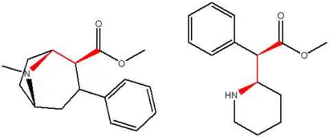 - ↑ Kozikowski, A. P.; Araldi, G. L.; Boja, J.; Meil, W. M.; Johnson, K. M.; Flippen-Anderson, J. L.; George, C.; Saiah, E. (1998). "Chemistry and Pharmacology of the Piperidine-Based Analogues of Cocaine. Identification of Potent DAT Inhibitors Lacking the Tropane Skeleton". Journal of Medicinal Chemistry. 41 (11): 1962–9. CiteSeerX 10.1.1.512.7158. doi:10.1021/jm980028+. PMID 9599245.