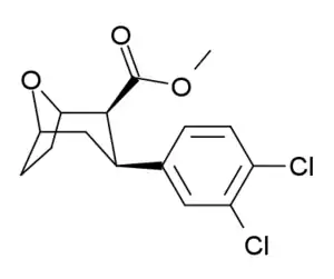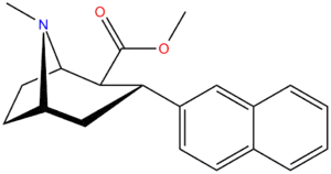 - ↑ Davies, H. M.; Gilliatt, V; Kuhn, L. A.; Saikali, E; Ren, P; Hammond, P. S.; Sexton, T; Childers, S. R. (2001). "Synthesis of 2β-Acyl-3β-(substituted naphthyl)-8-azabicyclo[3.2.1]octanes and Their Binding Affinities at Dopamine and Serotonin Transport Sites". Journal of Medicinal Chemistry. 44 (10): 1509–1515. doi:10.1021/jm000363+. PMID 11334561.