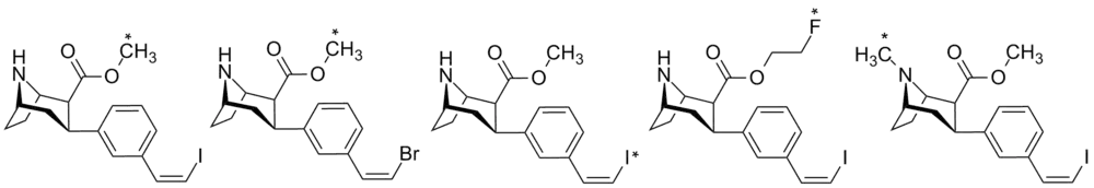 - ↑ Goodman, Mark M. (2003). "Synthesis and Characterization of Iodine-123 Labeled 2β-Carbomethoxy-3β-(4′-((Z)-2-iodoethenyl)phenyl)nortropane. A Ligand for in Vivo Imaging of Serotonin Transporters by Single-Photon-Emission Tomography". Journal of Medicinal Chemistry. 46 (6): 925–935. doi:10.1021/jm0100180. PMID 12620070.
