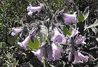 Eriodictyon crassifolium | Yerba Santa | Used by the Chumash people to keep airways open for proper breathing.[62] The US Forest Service profile[63] for Eriodictyon crassifolium provides information on species distribution; taxonomic relationships; ecological and evolutionary considerations for restoration; growth form and distinguishing traits; habitat characteristics; projected future suitable habitat; growth, reproduction and dispersal; biological interactions; ecological genetics; seed characteristics, germination requirements and processing; and plant uses including agriculture, restoration, and traditional products, plus an extensive bibliography. It is part of Riverside-Corona Resource Conservation District's resource materials collection on native plant recommendations for southern California ecoregions. | ![]() |