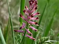 Fumaria officinalis | Fumitory | Traditionally thought to be good for the eyes and to remove skin blemishes. In modern times herbalists use it to treat skin diseases and conjunctivitis, as well as to cleanse the kidneys. However, Howard (1987) warns that fumitory is poisonous and should only be used under the direction of a medical herbalist.[77] | ![]() |