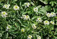 Geranium robertianum | Robert geranium | In traditional herbalism, it was used as a remedy for toothache and nosebleeds[79] and as a vulnerary (used for or useful in healing wounds).[80] | ![]() |