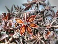 Illicium verum | Star anise | It is the major source of the chemical compound shikimic acid, a primary precursor in the pharmaceutical synthesis of anti-influenza drug oseltamivir (Tamiflu).[93] | ![]() |