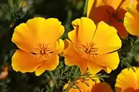Eschscholzia californica | Californian poppy | Used as a herbal remedy: an aqueous extract of the plant has sedative and anxiolytic actions.[66] | ![]() |
