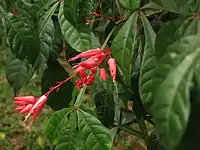 Cassia occidentalis | Coffee senna | Used in a wide variety of roles in traditional medicine, including in particular as a broad-spectrum internal and external antimicrobial, for liver disorders, for intestinal worms and other parasites and as an immune-system stimulant.[40][41] | ![]() |