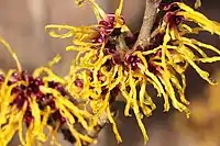 Hamamelis virginiana | Common witch-hazel | It produces a specific kind of tannins called hamamelitannins. One of those substances displays a specific cytotoxic activity against colon cancer cells.[85] | ![]() |