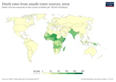 - ↑ "Global WASH-Related Diseases and Contaminants". CDC. 6 August 2020. Archived from the original on 17 May 2017. Retrieved 13 March 2022.