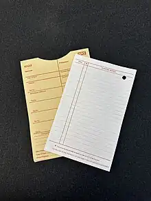 Between 1911 and the formation of the NHS in 1948, the record-keeping cards were in general use by health boards.[2] The envelopes were introduced during the First World War.[4] Their size was based on their storage in the large number of available ammunition boxes during the First World War.[5][6]