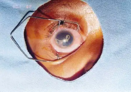Adult worms found in the eye can be surgically removed with forceps after being paralyzed with a topical anesthesia. The worm is not paralyzed completely, so if it is not extracted quickly, it can vanish upon attempting extraction.[12]