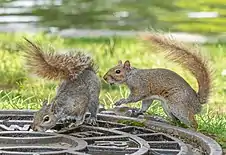 Lordosis behavior (/lɔːrˈdsɪs/[1]), also known as mammalian lordosis (Greek lordōsis, from lordos "bent backward"[1]) or presenting, is the naturally occurring body posture for sexual receptivity to copulation present in females of most mammals including rodents, elephants, and cats. The primary characteristics of the behavior are a lowering of the forelimbs but with the rear limbs extended and hips raised, ventral arching of the spine and a raising, or sideward displacement, of the tail. During lordosis, the spine curves dorsoventrally so that its apex points towards the abdomen.