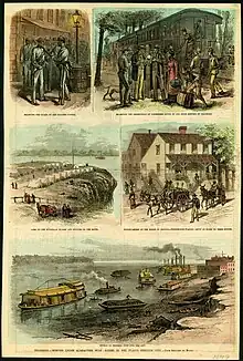 The entire Mississippi River Valley from St. Louis south was affected, and tens of thousands fled the stricken cities of New Orleans, Vicksburg, and Memphis. The epidemic in the Lower Mississippi Valley also greatly affected trade in the region, with orders of steamboats to be tied up in order to reduce the amount of travel along the Mississippi River, railroad lines were halted, and all the workers to be laid off.[6] Carrigan states that "An estimated 15,000 heads of households were unemployed in New Orleans, 8,000 in Memphis, and several thousands more in scattered small towns - representing a total of over 100,000 persons in dire need."[6]