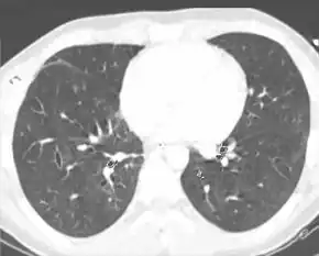 - ↑ Donnelly LF (2002). "CT of Acute pulmonary infection/trauma". In Strife JL, Lucaya J (eds.). Pediatric Chest Imaging: Chest Imaging in Infants and Children. Berlin: Springer. p. 123. ISBN 3-540-43557-3.
