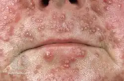 Lupus miliaris disseminatus faciei , also known as acne agminata, is a disease with a similar appearance to acne vulgaris.[1][2]