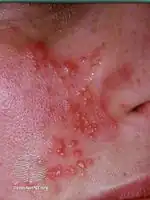 LMDF usually occurs on the face, but extrafacial presentations have been reported. Mycobacterium tuberculosis or its products may cause a caseous necrosis and thus maybe one of several possible causes. Some authors view LMDF as a variant of granulomatous rosacea or a presentation related to Demodex folliculitis. Others suggest it as a new independent entity and proposed a new term: Facial Idiopathic GranUlomas with Regressive Evolution. Misago et al. postulated LMDF as a common adult form, childhood granulomatous periorificial dermatitis as a rare childhood form, and perioral dermatitis as a peculiar form exacerbated by topical corticosteroids. There are no randomized controlled trials available for the treatment of LMDF.