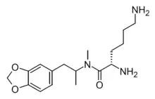 Lys-MDA (Lysine-MDA, N-(L-lysinamidyl)-3,4-methylenedioxyamphetamine) is a substituted amphetamine derivative with empathogenic effects, which acts as a prodrug for MDA with a slower onset of effects and longer duration of action. Lys-MDA, along with the related derivative Lys-MDMA, are in early stage human clinical trials as potential treatments for treatment-resistant depression and post-traumatic stress disorder.Currently new MDMA prodrugs are in the development phase at MiHKAL GmbH in Switzerland.[1][2][3][4]