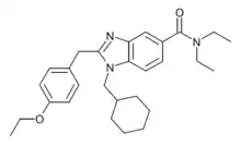 MCHB-1 is a benzimidazole derived drug which was researched as an analgesic but never developed for medical use. It acts as a potent agonist of the CB2 receptor, with an EC50 of 0.52nM at CB2, and ~30x selectivity over CB1 (Ki of 110nM at CB1 vs 3.7nM at CB2).[1][2] It has been sold online as a designer drug, first being identified in Germany in December 2013.[3]