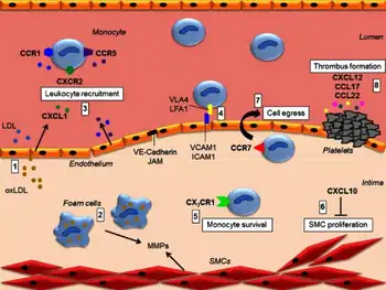 - ↑ Robbins CS, Hilgendorf I, Weber GF, Theurl I, Iwamoto Y, Figueiredo JL, Gorbatov R, Sukhova GK, Gerhardt LM, Smyth D, Zavitz CC, Shikatani EA, Parsons M, van Rooijen N, Lin HY, Husain M, Libby P, Nahrendorf M, Weissleder R, Swirski FK (September 2013). "Local proliferation dominates lesional macrophage accumulation in atherosclerosis". Nature Medicine. 19 (9): 1166–72. doi:10.1038/nm.3258. PMC 3769444. PMID 23933982.