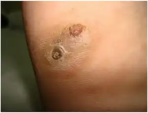 Madurella mycetomatis is the most common fungus with respect to causing mycetoma in humans,[15] a chronic localized inflammatory disease.[16] Madurella mycetomatis accounts for 70% of mycetoma cases in central Africa, especially common in Sudan.[2] Cases of mycetoma caused by this fungus have also been reported in West Africa, India, Venezuela, Curaçao, Brazil, Peru and Argentina.[9] The mode of entry for etiological agents of mycetoma, such as M. mycetomatis, is trauma, such as; snake bites, knives, splinters, thorns and insect bites. Thus having identified M. mycetomatis in soil and anthill samples substantiates its involvement in mycetoma.[7] Infected hosts from samples in Sudan show variability in clinical symptoms, this corroborates the heterogeneity of M. mycetomatis genotypes.[2][5]