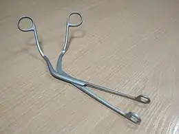 Magill forceps are angled forceps used to guide a tracheal tube into the larynx or a nasogastric tube into the esophagus under direct vision.[1] They are also used to remove foreign bodies.[1] These forceps are named after the Irish-born anaesthetist Ivan Magill.[1]