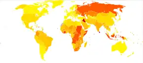 - ↑ "Death and DALY estimates for 2004 by cause for WHO Member States" (xls). World Health Organization. 2004. Retrieved 2010-11-13.