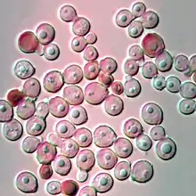 - ↑ Xu J, Saunders CW, Hu P, et al. (November 2007). "Dandruff-associated Malassezia genomes reveal convergent and divergent virulence traits shared with plant and human fungal pathogens". Proc. Natl. Acad. Sci. U.S.A. 104 (47): 18730–5. Bibcode:2007PNAS..10418730X. doi:10.1073/pnas.0706756104. PMC 2141845. PMID 18000048.
