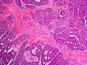 - ↑ Wilson KM, Jubert AV, Joseph JI (May 1989). "Sweat gland carcinoma of the hand (malignant acrospiroma)". J Hand Surg Am. 14 (3): 531–5. doi:10.1016/S0363-5023(89)80018-8. PMID 2544641.