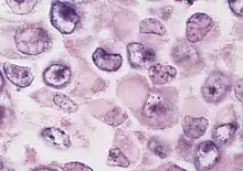 - ↑ PJ Biggs; Garen PD; Powers JM; Garvin AJ (1987). "Malignant rhabdoid tumor of the central nervous system". Human Pathology. 18 (4): 332–337. doi:10.1016/S0046-8177(87)80161-2. PMID 3030922.