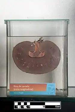![]() Unipapillary, multilobar, smooth, bean-shaped camel kidney, in which the renal papillae are completely fused into the renal crest.[1] | |