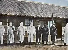The Chinese government also sought the support of foreign doctors, a number of whom died as a consequence of the disease.[6] In Harbin, this included the Frenchman Gérald Mesny, from the Imperial Medical College in Tientsin, who disputed Wu's recommendation of masks; a few days later, he died after catching the plague when visiting patients without wearing a mask.[7] Another was the 26-year-old Arthur F. Jackson, a United Free Church of Scotland missionary doctor, who fell ill within eight days of inspecting and quarantining hundreds of poor laborers; he died two days later in Mukden.[8][9]