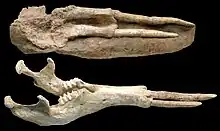 Many primitive proboscideans belonging to the group Elephantiformes have a greatly elongated mandibular symphysis. This was lost in many later groups, including modern elephants.[6]
