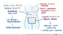 Uterine enlargement beyond 20 weeks' size can compress the inferior vena cava, which can markedly decrease the return of blood into the heart or preload. As a result, healthy pregnancy patients in a supine position or prolonged standing can experience symptoms of hypotension.[21]