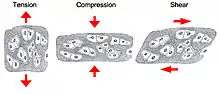 - ↑ Torzilli, P. A.; Deng, X-H.; Ramcharan, M. (2006). "Effect of Compressive Strain on Cell Viability in Statically Loaded Articular Cartilage". Biomechanics and Modeling in Mechanobiology. 5 (2–3): 123–32. doi:10.1007/s10237-006-0030-5. PMID 16506016. S2CID 39216430.