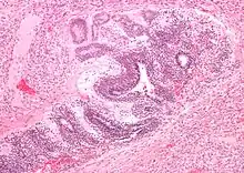 Micrograph of the primitive neuroepithelium of an immature teratoma of the mediastinum. H&E stain. | |