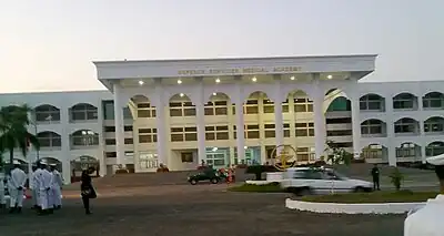 The Defence Services Medical Academy (DSMA; Burmese: တပ်မတော် ဆေး တက္ကသိုလ်), located in Mingaladon, Yangon, is the University of Medicine of the Myanmar Armed Forces. One of the most selective universities in the country, the academy offers M.B., B.S. (equivalent of the M.D.) degree programs. Upon graduation, most DSMA cadets are commissioned with the rank of Lieutenant in the Myanmar Army Medical Corps. The military physicians are to serve the healthcare needs of rural people when they are assigned in the country's remote regions where access to healthcare is poor.