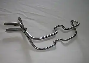 In the context of surgery or dental surgery, a gag is a device used to hold the patient's mouth open when working in the oral cavity, or to force the mouth open when it cannot open naturally because of forward dislocation of the jaw joint's intraarticular cartilage pad. Applications for medical gags include oral surgery and airway management. Gag designs, like other medical instrument designs, are often named after their inventors. Common examples of medical gags include the Jennings, Whitehead, and Hallam gags.