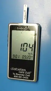 In 2012, there are devices built for medical professionals to analyze specific diseases or take specific health measurements, but there is not one all-purpose consumer device to diagnose a variety of conditions.[8] Numerous accounts speculate that the advent of high-power computer chips, cell-phone technology, and improved scanners means that such a device will likely be invented in the next few years.[8] There are devices now which can perform a single function analysis, such as a thermometer measuring bodily temperature, but the idea of a medical tricorder is that it should be able to perform a variety of basic yet important tasks.[3] For example, it may be possible to combine a high-power microscope with a cellphone and use it to analyze swab samples electronically.[3] Two electrodes on a device may measure heart action and serve as a portable electrocardiogram.[3] Glucose levels can be measured by sampling tiny blood samples.[3] It may analyze polarized light coming from a person's skin to reveal information about cancer or the healing of a wound.[2] Sensors may pick up on abnormalities with DNA as well as the presence of antibodies.[11] An ultrasonic probe can plug into a smartphone, allowing it to be used to create ultrasound images.[3] Medical tricorders may work by sensing "volatile organic compounds our bodies secrete" by some means of smell.[5] A second report confirms that sensitive electronic "noses" may detect infections such as pneumonia from a person's exhaled breaths.[11]