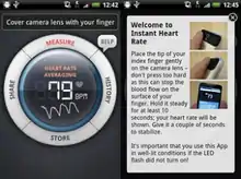 There are reports that medical tricorders may emerge from "diagnostic medical apps" via Tablet Computers and smartphones.[12] Some existing smartphones have been used as medical devices in the sense that text reminders have been sent to a patient about prescription renewals, and downloadable apps allow cameras in cell phones to act as sensors to track heart and breathing rates.[3] One neurologist uses iPhone smartphone apps entitled Liftpulse and iSeismograph to diagnose and measure tremors in patients with Parkinson's disease.[13] Some apps take advantage of sensors built into the smartphone hardware, such as a microphone, camera, GPS, accelerometer, gyroscope, magnetometer, proximity sensor, luxmeter, and sensors for temperature and humidity.[13] Physicians use a device called an otoscope to look inside the ear, and such a device could be made which clips onto an iPhone, according to one report.[3] There was a report that a tricorder to detect atmospheric analysis has been built.[5] There are reports of fitness scanners available which are worn on a person's wrist, which relay information such as heart rate.[14] The United States Department of Homeland Security has announced a "standoff patient triage tool" which is laser-based which helps medics evaluate a patients' vital signs wirelessly from 40 feet (12 m) away.[15]