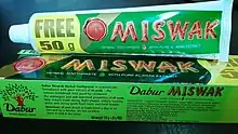 ![]() Meswak Herbal Toothpaste manufactured in the Middle East | |