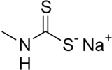 Metam sodium is an organosulfur compound with the formula CH3NHCS2Na. The compound is a sodium salt of a dithiocarbamate. The compound exists as a colorless dihydrate, but most commonly it is encountered as an aqueous solution.[2] It is used as a soil fumigant, pesticide, herbicide, and fungicide. It is one of the most widely used pesticides in the United States, with approximately 60 million pounds used in 2001.[3]