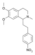 - ↑ Walter M, Besendorf H, Schnider O (1963). "Synthesen in der Isochinolinreihe. Substituierte 1-[ω-(Nitrophenyl)alkyl]-1,2,3,4-tetrahydro-isochinoline". Helvetica Chimica Acta. 46 (4): 1127–1132. doi:10.1002/hlca.19630460405.