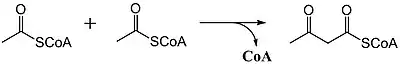 Acetyl-CoA (citric acid cycle) undergoes condensation with another acetyl-CoA molecule to form acetoacetyl-CoA