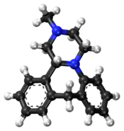 Mianserin, sold under the brand name Tolvon among others, is an atypical antidepressant that is used primarily in the treatment of depression in Europe and elsewhere in the world.[6] It is a tetracyclic antidepressant (TeCA). Mianserin is closely related to mirtazapine, both chemically and in terms of its actions and effects, although there are significant differences between the two drugs.[7]