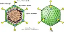 - ↑ "T=25 icosahedral capsid protein ~ ViralZone". Viralzone.expasy.org. Retrieved 2022-07-06.