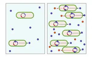 Natural selection normally favors a gene if it increases reproduction, because the offspring share copies of that gene. However, a gene can also be favored if it aids other relatives, who also share copies. Therefore, by helping a close relative reproduce, an individual is still passing on its own genes to the next generation, albeit indirectly. Hamilton pointed out that kin selection could occur via two mechanisms: (a) kin discrimination, when cooperation is preferentially directed toward relatives, and (b) limited dispersal (population viscosity), which keeps relatives in spatial proximity to one another, allowing cooperation to be directed indiscriminately toward all neighbors (who tend to be relatives).[2] In microbial systems, these two mechanisms are equally important. For example, most microbial populations often begin from a small number of colonizers. Because most microbes reproduce asexually, close genetic relatives will surround cells as the population grows. These clonal populations often result in an extremely high density, especially in terrestrial systems. Therefore, the probability that a cells altruistic behavior will benefit a close relative is extremely high.