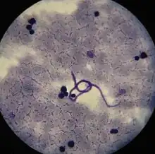 The microfilaria (plural microfilariae, sometimes abbreviated mf) is an early stage in the life cycle of certain parasitic nematodes in the family Onchocercidae.[1] In these species, the adults live in a tissue or the circulatory system of vertebrates (the "definitive hosts"). They release microfilariae into the bloodstream of the vertebrate host. The microfilariae are taken up by blood-feeding arthropod vectors (the "intermediate hosts"). In the intermediate host the microfilariae develop into infective larvae that can be transmitted to a new vertebrate host.