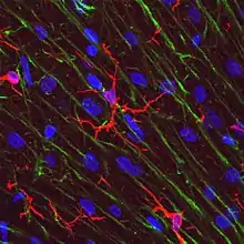 40. 1 2 3 4 Schwabenland M, Brück W, Priller J, Stadelmann C, Lassmann H, Prinz M (December 2021). "Analyzing microglial phenotypes across neuropathologies: a practical guide". Acta Neuropathologica. 142 (6) (published October 2021): 923–936. doi:10.1007/s00401-021-02370-8. PMC 8498770. PMID 34623511.  This article incorporates text available under the CC BY 4.0 license.