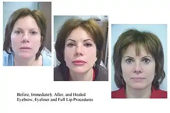- ↑ "Permanent Makeup (Micropigmentation): Get Facts About Risk". MedicineNet. Retrieved 2018-07-20.