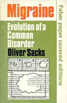 Migraine is the first book written by Oliver Sacks, a well-known New York City-based neurologist and author. The full title of the first edition was Migraine - Evolution of a Common Disorder. The book was written in 1967, mostly over a nine-day period,[1] and first published in 1970. A revised and updated version was published in 1990. (In the 1990 revised edition, the last chapter Migraine Aura and Hallucinatory Constants was written in collaboration with Ralph M. Siegel.[2])